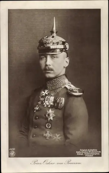 Ak Oskar Prinz von Preußen, Portrait, Pickelhaube, Uniform, Orden