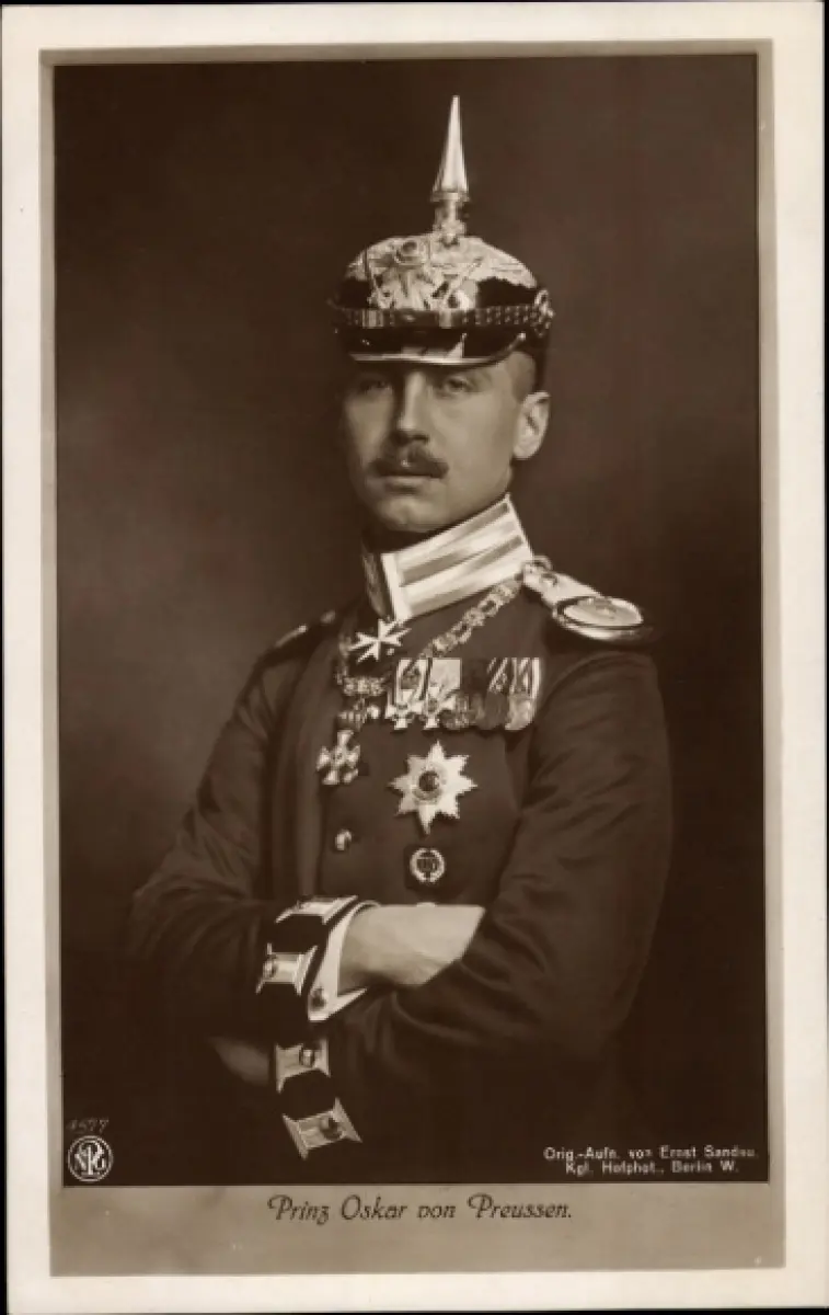 Ak Oskar Prinz von Preußen, Portrait in Uniform, Orden, Pickelhaube, NPG 4577