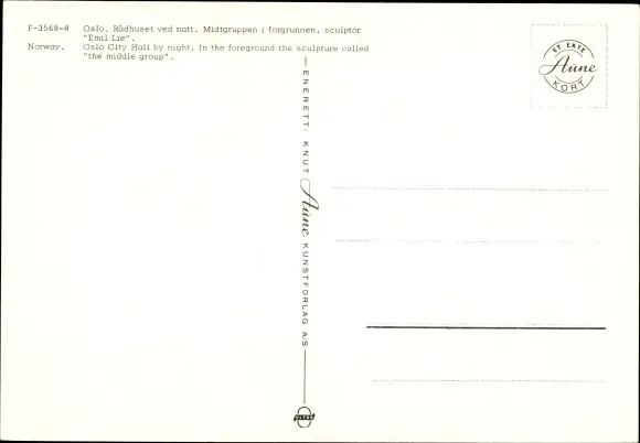 Ak Oslo Norwegen, Oslo City Hall by night, Sculpture The middle group