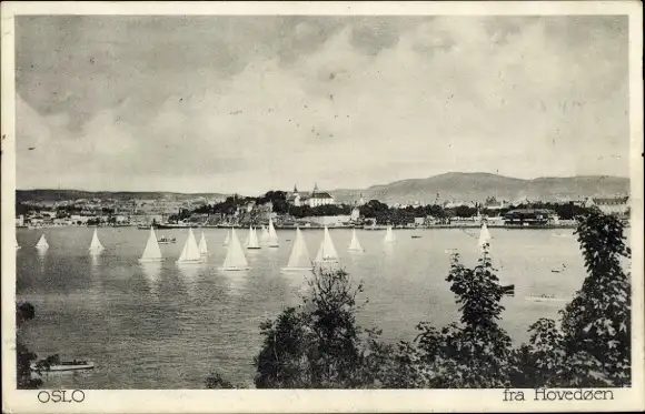Ak Oslo Norwegen, fra Hovedoen, Segelboote auf dem Wasser