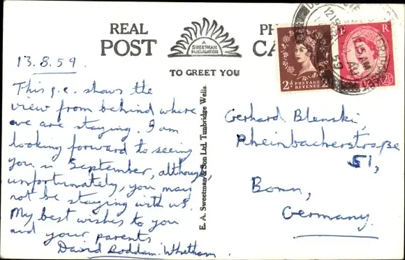 Zustand, siehe Scan, gelaufen, 1959 - ca 14 cm X 9 cm