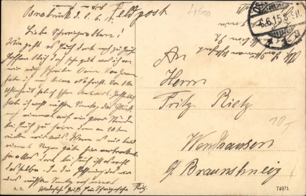 Zustand, siehe Scan, gelaufen, 1915 - ca 14 cm X 9 cm