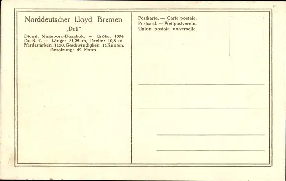 Ak Ost Asiatischer Küstendampfer Deli, Norddt. Lloyd