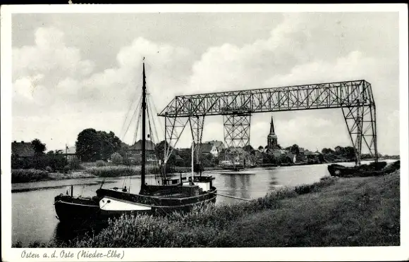 Ak Osten an der Oste, Fluss, Boote, Brücke