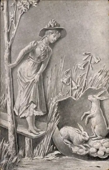 Ansichtskarte, Postkarte, Ostern, Osterhase, Frohe Ostern, Ostereier, Osterfest