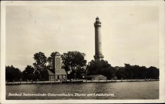 Ak Osternothafen Świnoujście Swinemünde Pommern, Leuchtturm