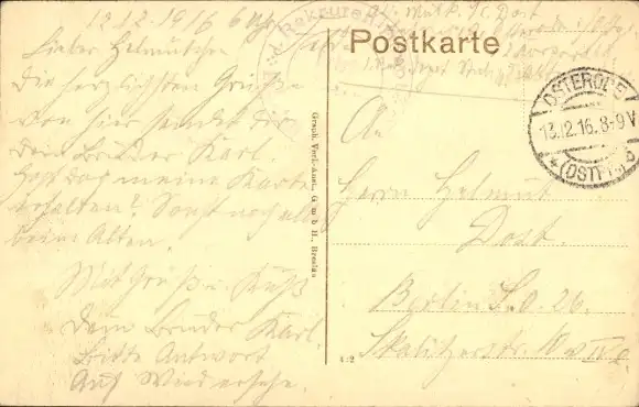 Zustand, siehe Scan, gelaufen, 1916 - ca 14 cm X 9 cm