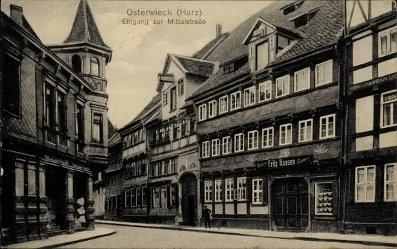 Ak Osterwieck am Harz, Eingang Mittelstraße, Fritz Hansen, Erker