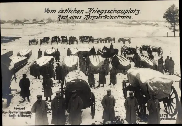Ak Ostfront, Korpsbrückentrain, Rast, I WK, Winter