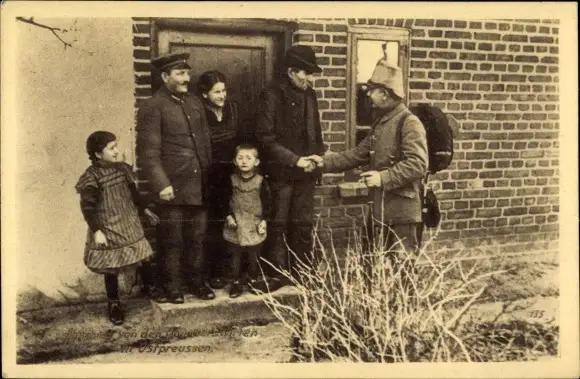 Ak Ostpreußen, Abschied von den Quartiergebern, 1. Weltkrieg, Ostpreußenhilfe