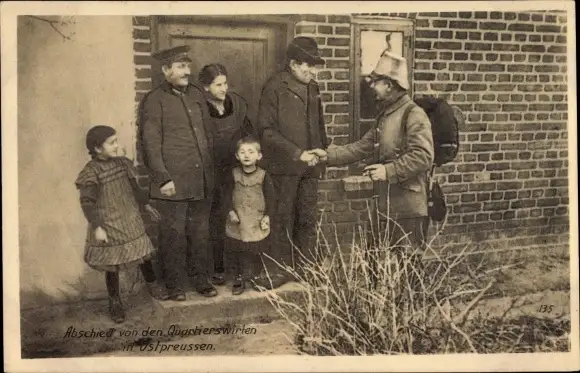 Ak Ostpreußen, Abschied von den Quartierswirten, Ostpreußenhilfe, Schütze, I. WK