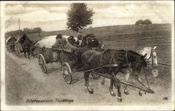 Ak Ostpreußen, Ostpreußische Flüchtlinge, Pferdekarren, I. WK, Ostpreußenhilfe