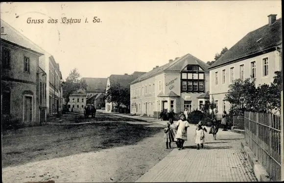 Ak Ostrau in Sachsen, Straßenpartie, Gasthaus