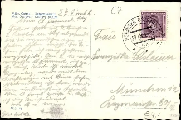 Ansichtskarte, Postkarte, Mährisch-Ostrau, Ostrava, Frankstadt, Frankstadt, Schlesien