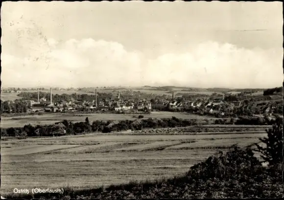 Ak Ostritz in der Oberlausitz, Ortsansicht mit Schloten und Kirche