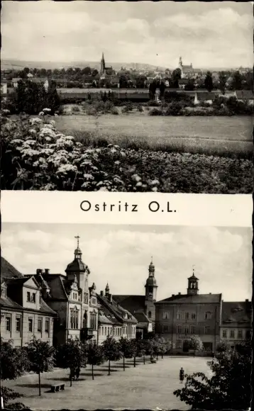 Ak Ostritz in der Oberlausitz Sachsen, Totale, Marktplatz