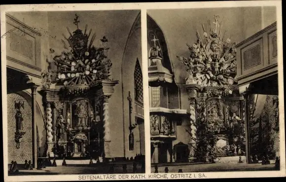 Ak Ostritz in der Oberlausitz, Seitenaltäre der kath. Kirche