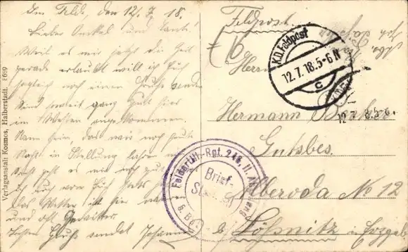 Zustand, siehe Scan, gelaufen, 1918 - ca 14 cm X 9 cm