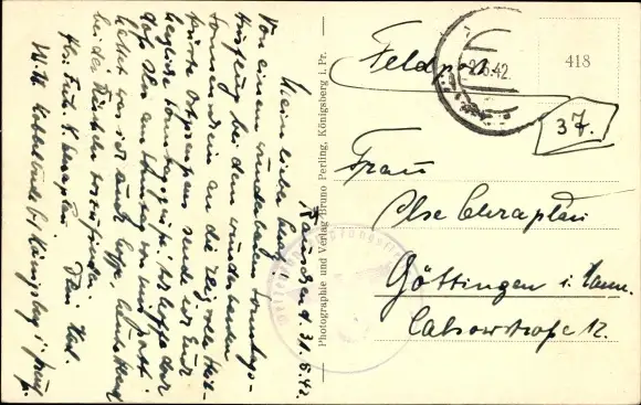 Zustand, siehe Scan, gelaufen, 1942 - ca 14 cm X 9 cm