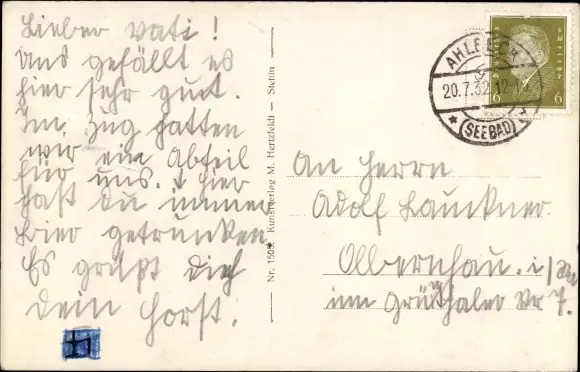 Zustand, siehe Scan, gelaufen, 1932 - ca 14 cm X 9 cm