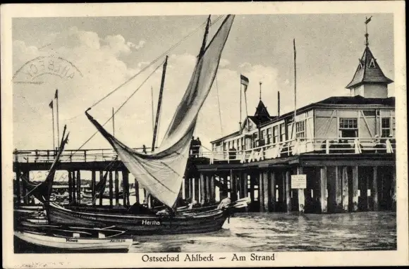 Ak Ostseebad Ahlbeck Heringsdorf auf Usedom, Am Strand, Segelboote, Seebrücke