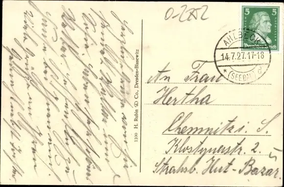 Zustand, siehe Scan, gelaufen, 1927 - ca 14 cm X 9 cm