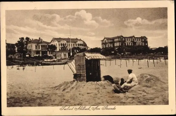 Ak Ostseebad Ahlbeck Heringsdorf auf Usedom, Am Strande, Badegäste, Strandkorb