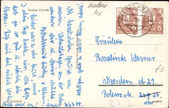 Zustand, siehe Scan, gelaufen, 1954 - ca 14 cm X 9 cm