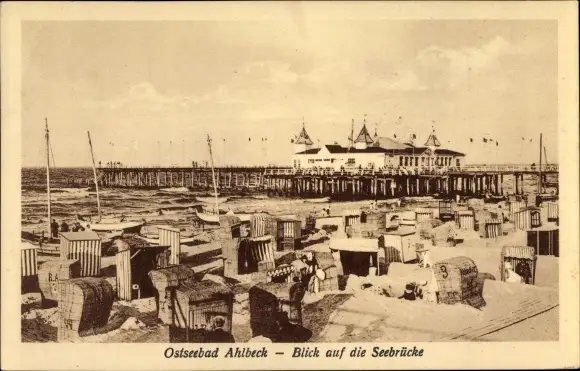 Ak Ostseebad Ahlbeck Heringsdorf auf Usedom, Seebrücke, Strand