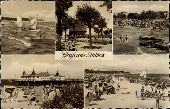 Ak Ostseebad Ahlbeck Heringsdorf auf Usedom, Segelboote, Strandpartie, Konzert