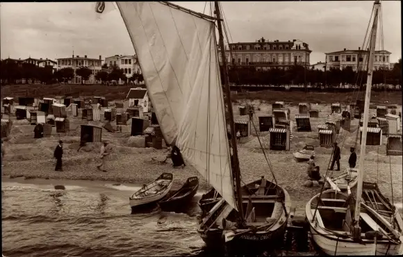 Ak Ostseebad Ahlbeck, Strand, Segelboote, Strandkörbe
