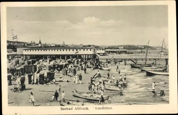 Ak Ostseebad Ahlbeck Usedom Heringsdorf, Strandpartie mit Ruderbooten am Ufer, Badeanstalt