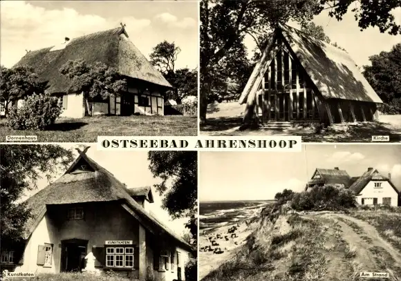 Ak Ostseebad Ahrenshoop Fischland, Dornenhaus, Kirche, Kunstkaten, Strand