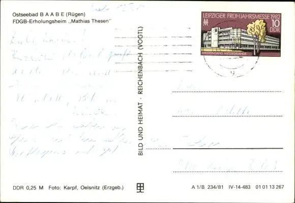 Ak Ostseebad Baabe auf Rügen, FDGB Erholungsheim Mathias Thesen