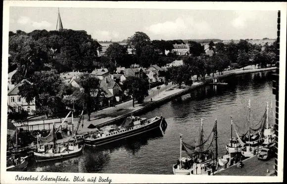 Ak Ostseebad Borby Eckernförde, Teilansicht, Boote am Anleger