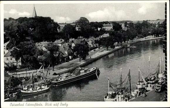 Ak Ostseebad Borby Eckernförde, Teilansicht, Hafen, Boote