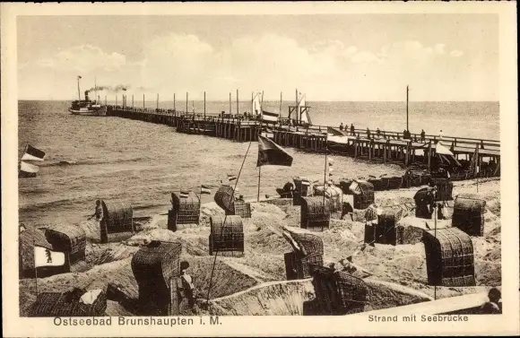 Ak Ostseebad Brunshaupten Kühlungsborn, Strand mit Seebrücke