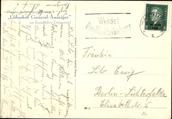 Ansichtskarte, Postkarte, Fliegeraufnahme, Luftbild, Luftaufnahme, Fliegerbild, Fliegerfoto