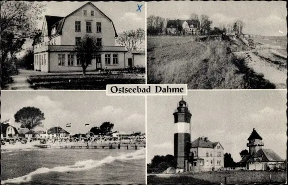 Ak Ostseebad Dahme in Holstein, Haus Seefrieden, Leuchtturm, Strand