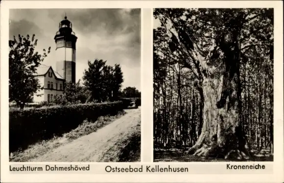 Ak Ostseebad Dahmeshöved Dahme in Holstein, Leuchtturm, Kroneneiche