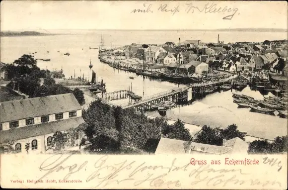 Ak Ostseebad Eckernförde, Panorama, Ostsee, Brücke