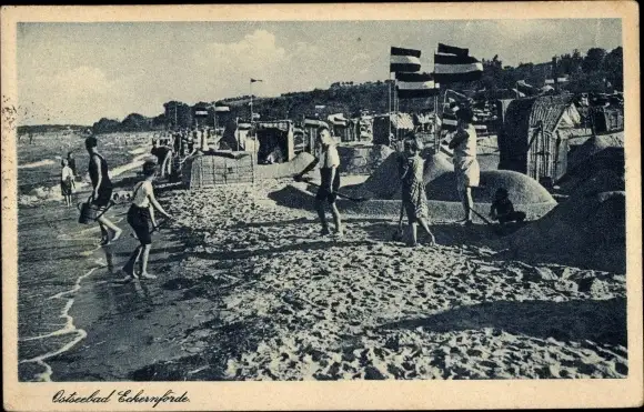 Ak Ostseebad Eckernförde, Strand, Fahnen