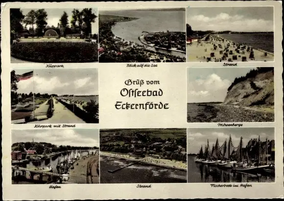 Ak Ostseebad Eckernförde, Strand, Kurpark, Fischerboote im Hafen