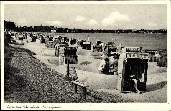 Ak Ostseebad Eckernförde, Strandpartie, Strandkörbe