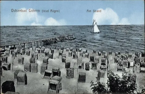 Ak Ostseebad Göhren auf Rügen, Am Strand, Segelboot, Strandkörbe
