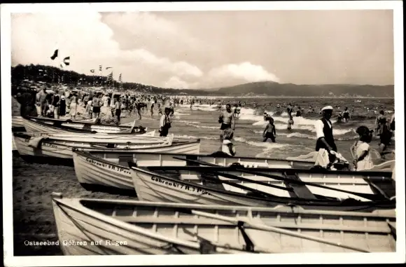 Ak Ostseebad Göhren auf Rügen, Strand, Ruderboote, Badegäste