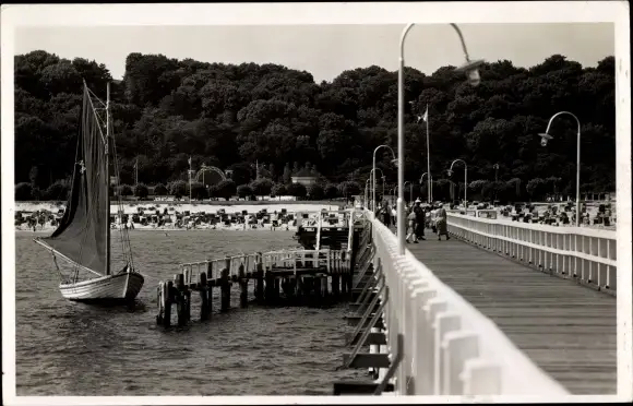 Ak Ostseebad Göhren auf Rügen, Strand, Seebrücke, Segelboot