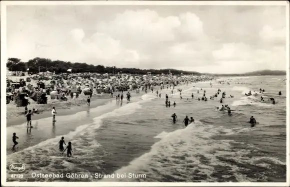 Ak Ostseebad Göhren auf Rügen, Strand bei Sturm, Strandkörbe, Badegäste