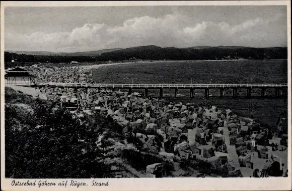 Ak Ostseebad Göhren auf Rügen, Strandpanorama, Seebrücke
