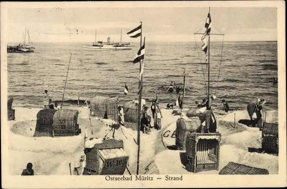 Ak Ostseebad Graal Müritz, Strand, Strandkörbe, Flaggen, Schiffe